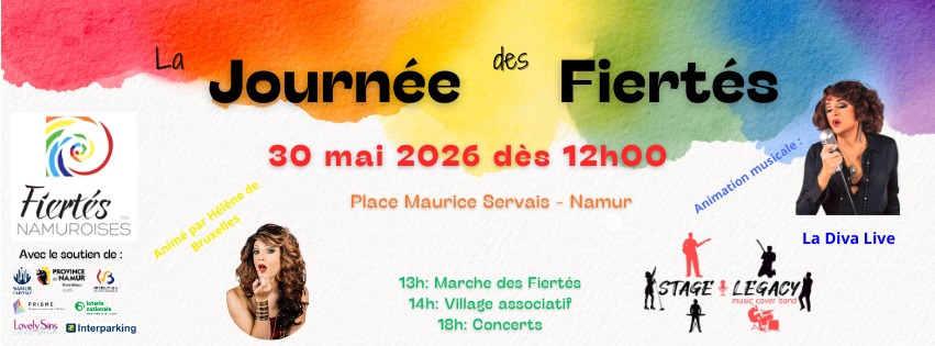 Les Fiertés namuroises ont le plaisir de vous convier à une soirée de gala (souper spectacle) le samedi 27 décembre 2025.
